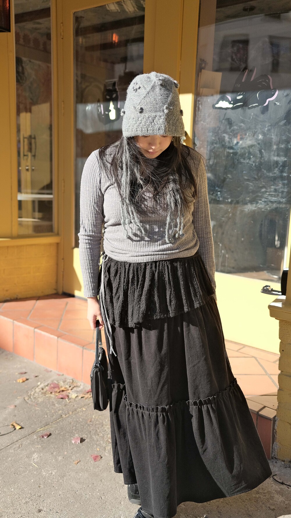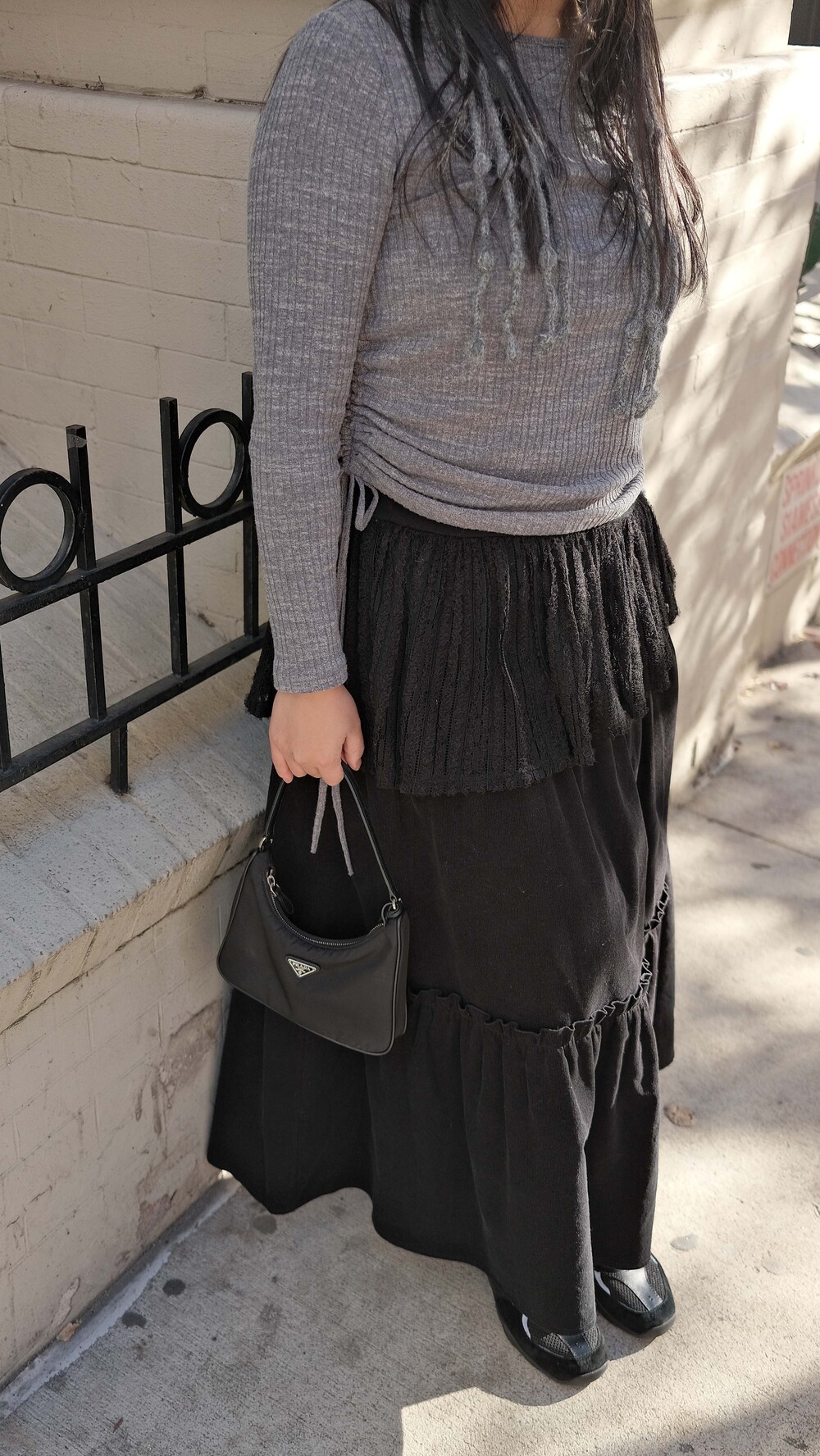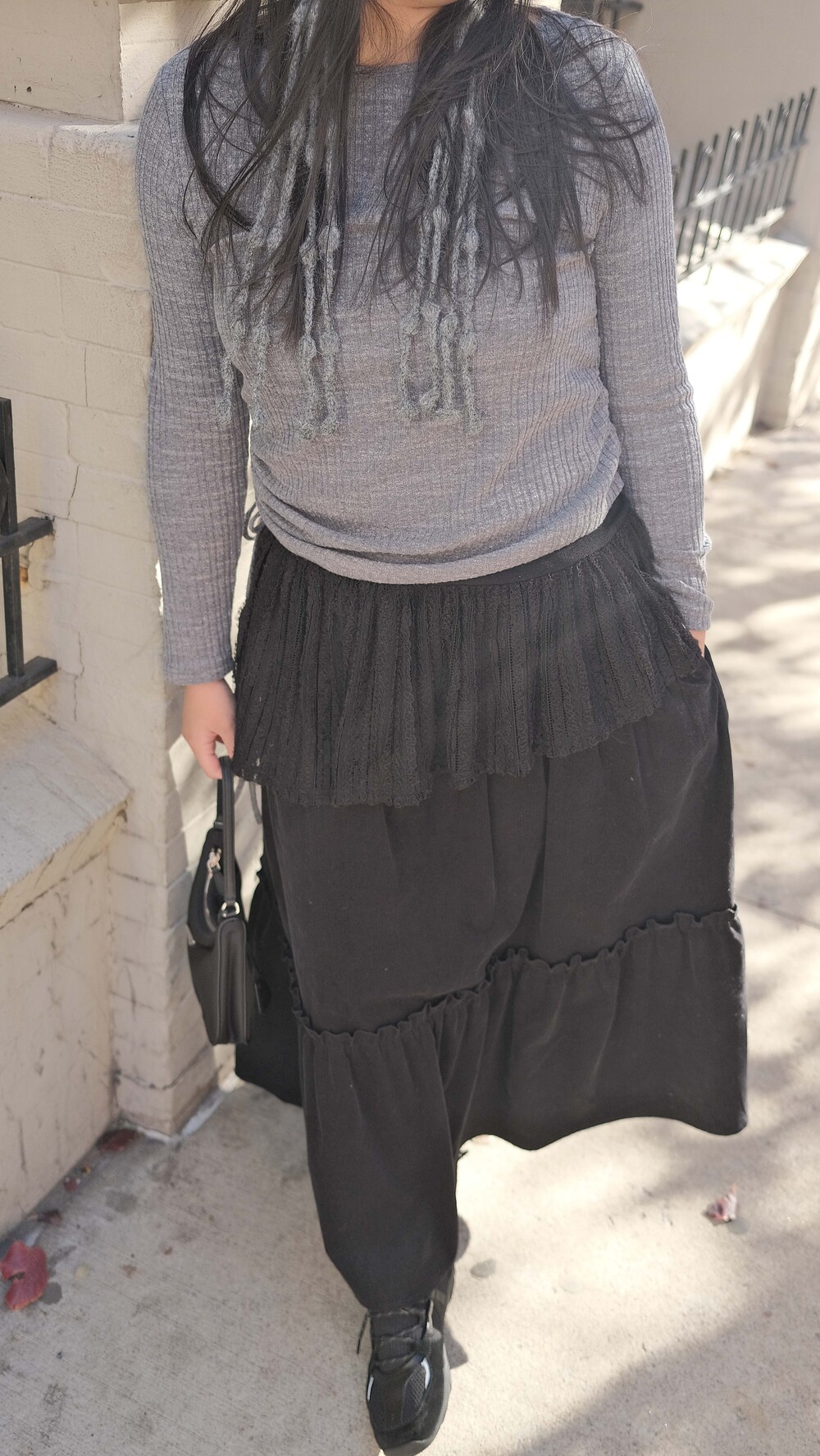 * Elastic waistband with an adjustable self-tie ribbon at the front