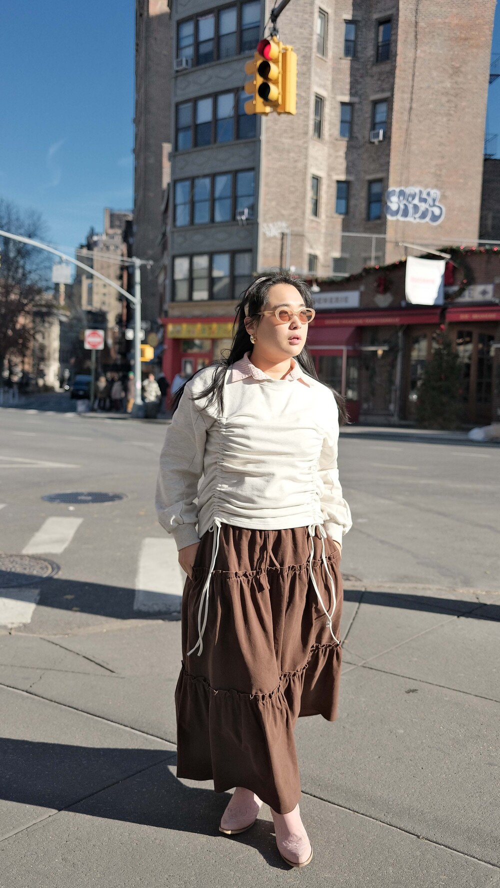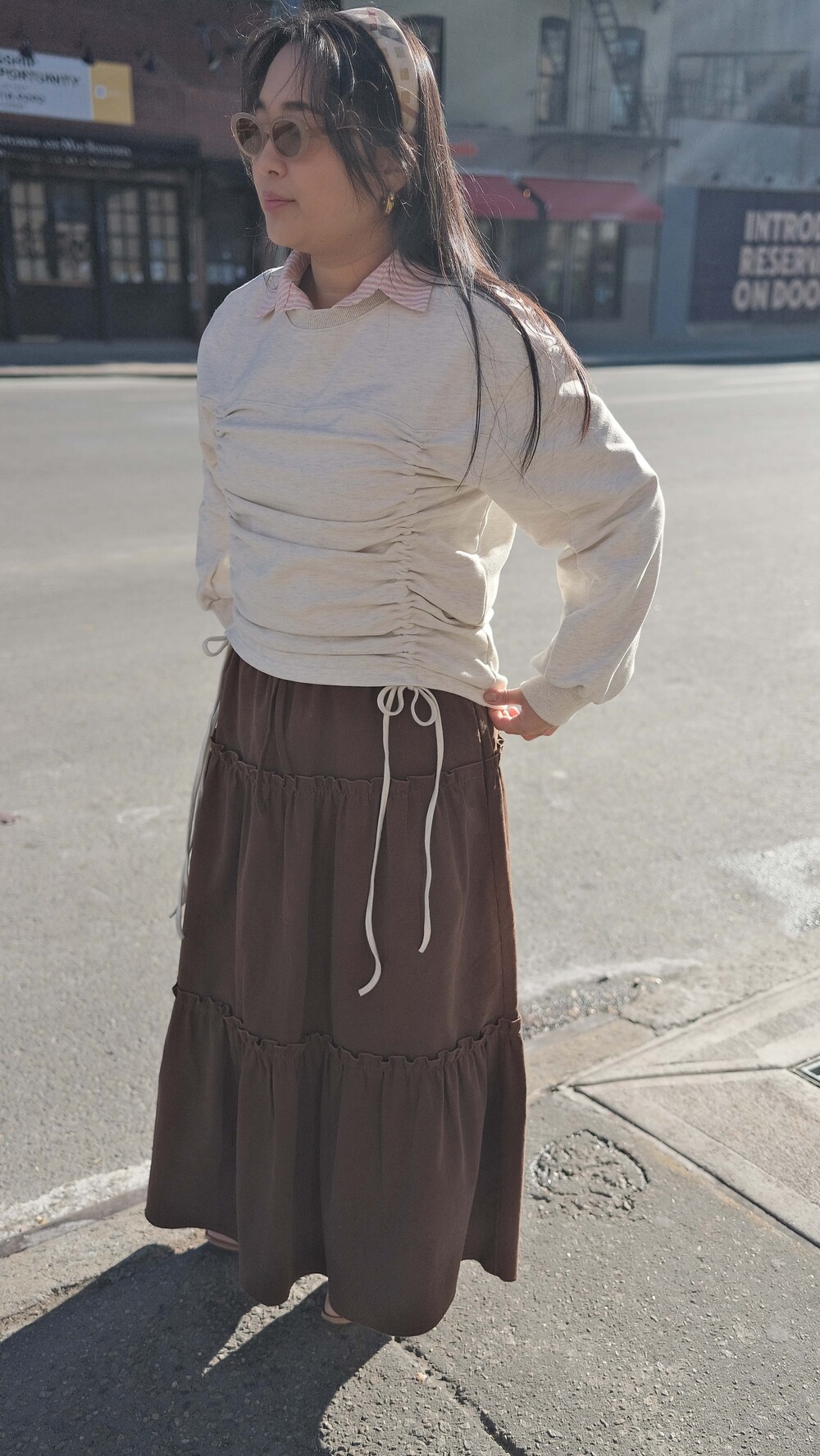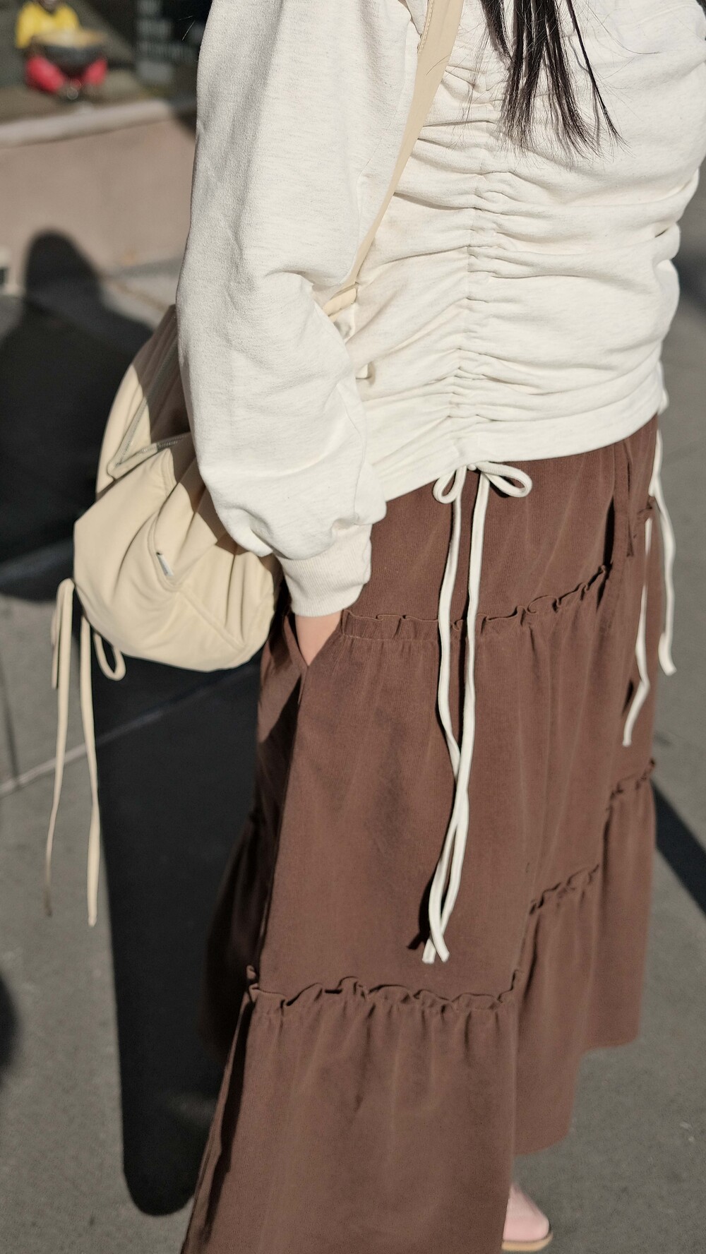 Corduroy Long Tiered Ruffle Skirt - Brown
