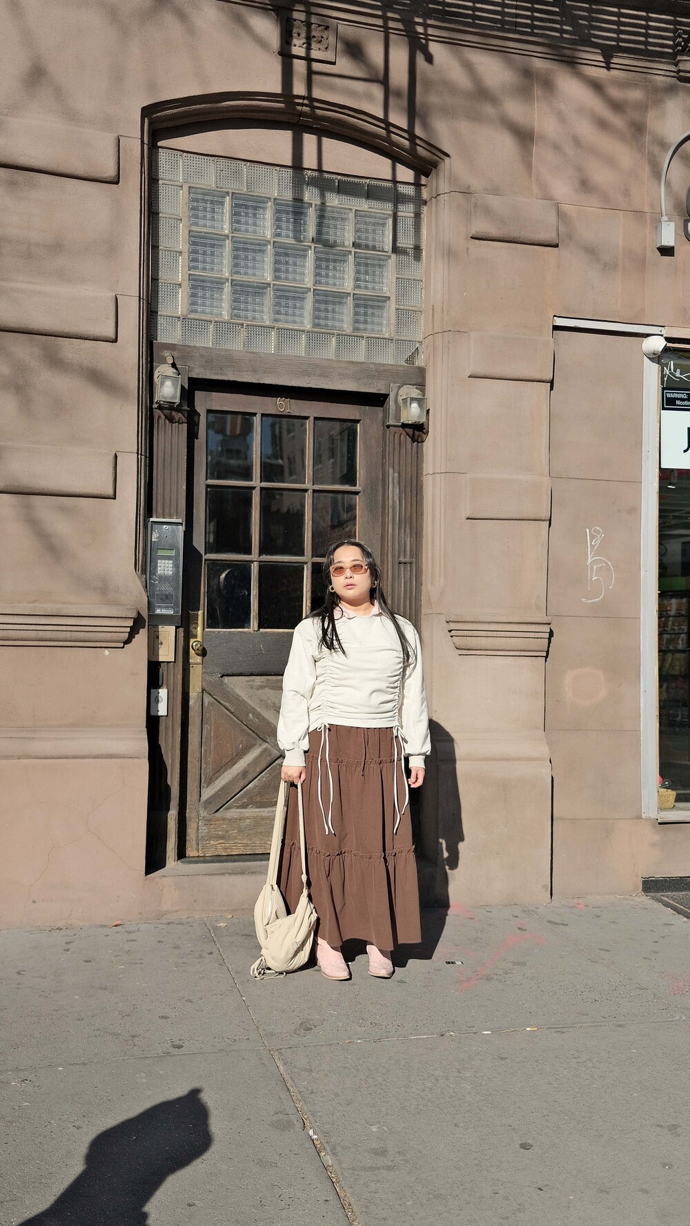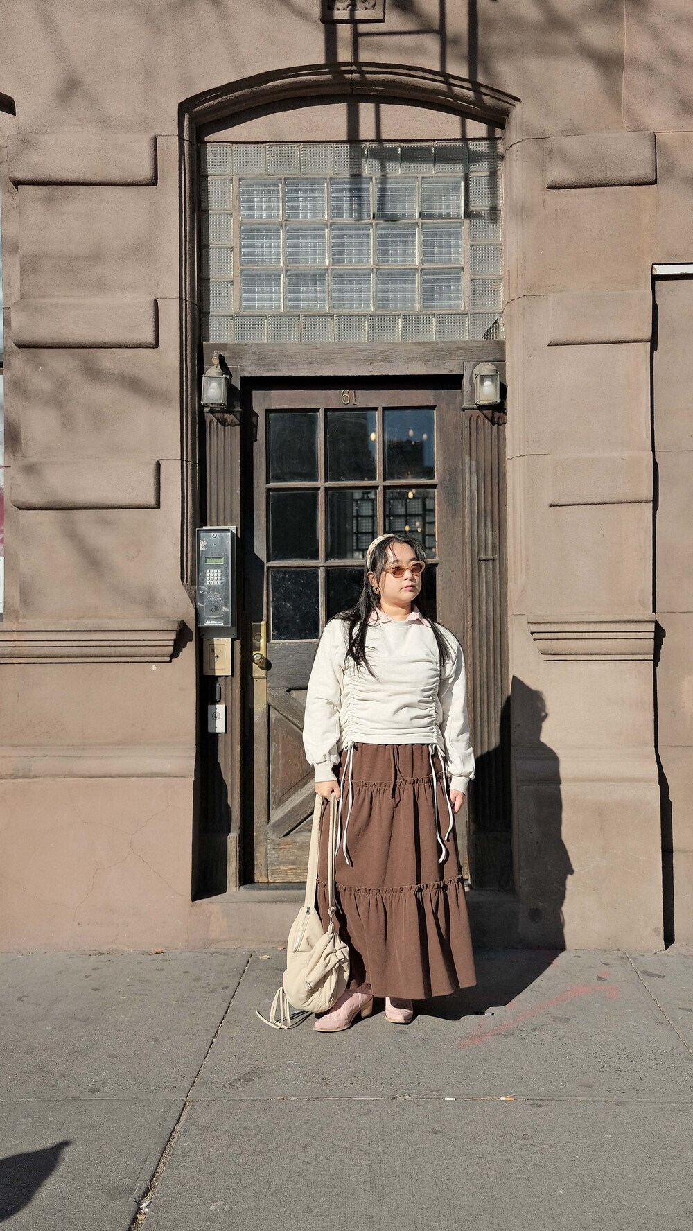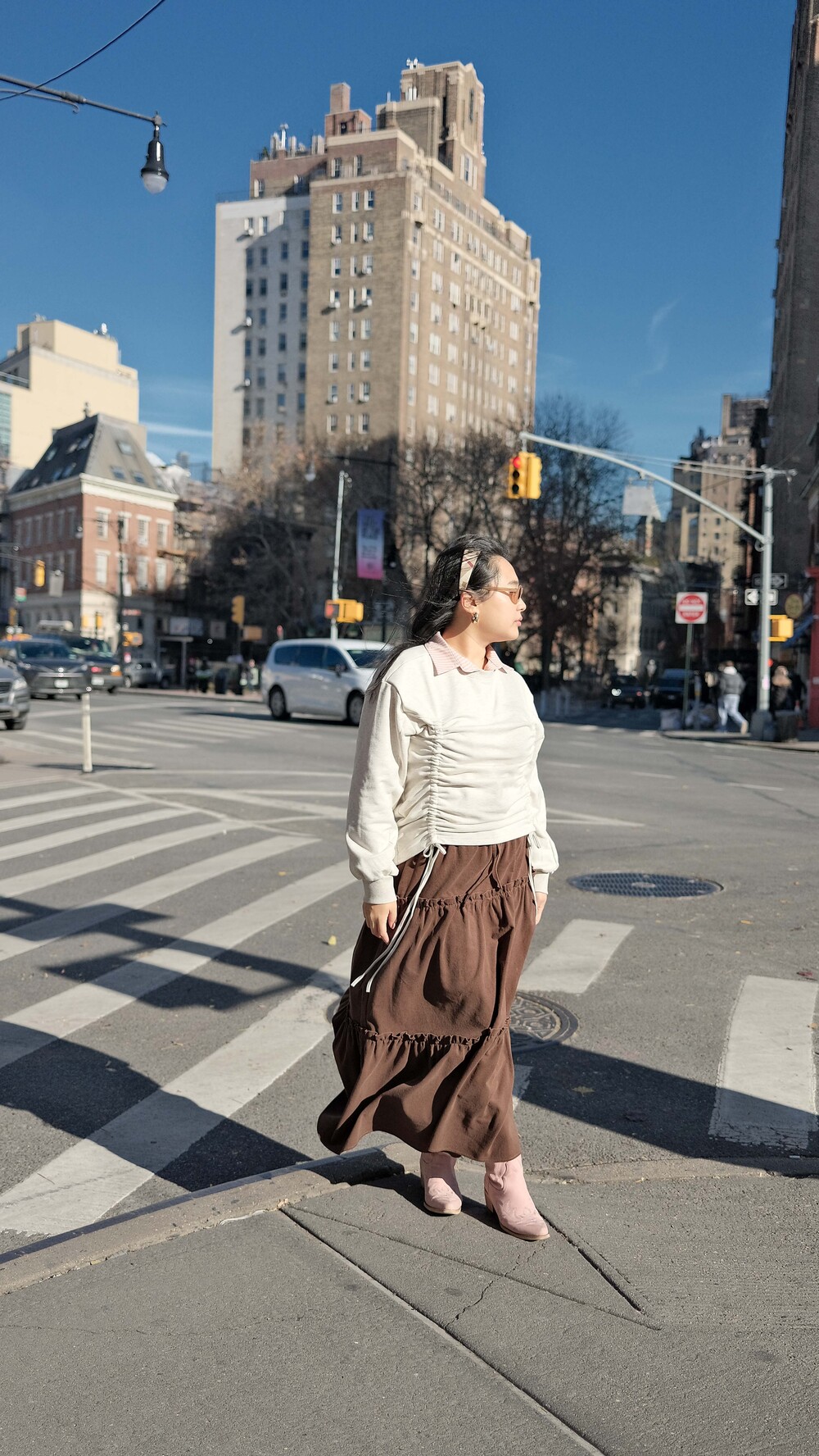 Corduroy Long Tiered Ruffle Skirt - Brown