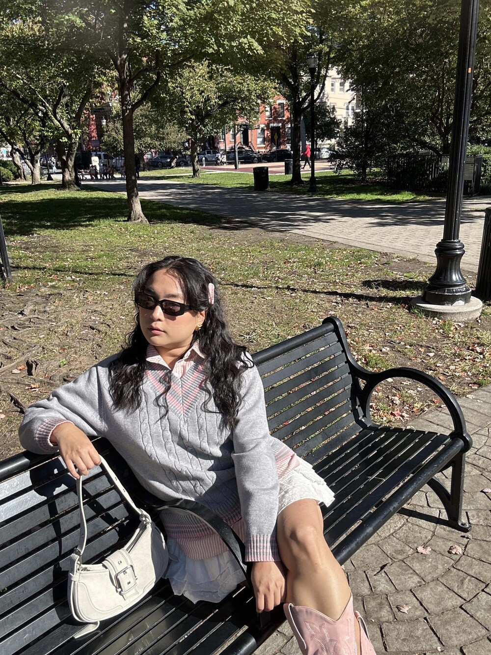 * eve in a logo contrast color embroidery on wearer's right bottom side
