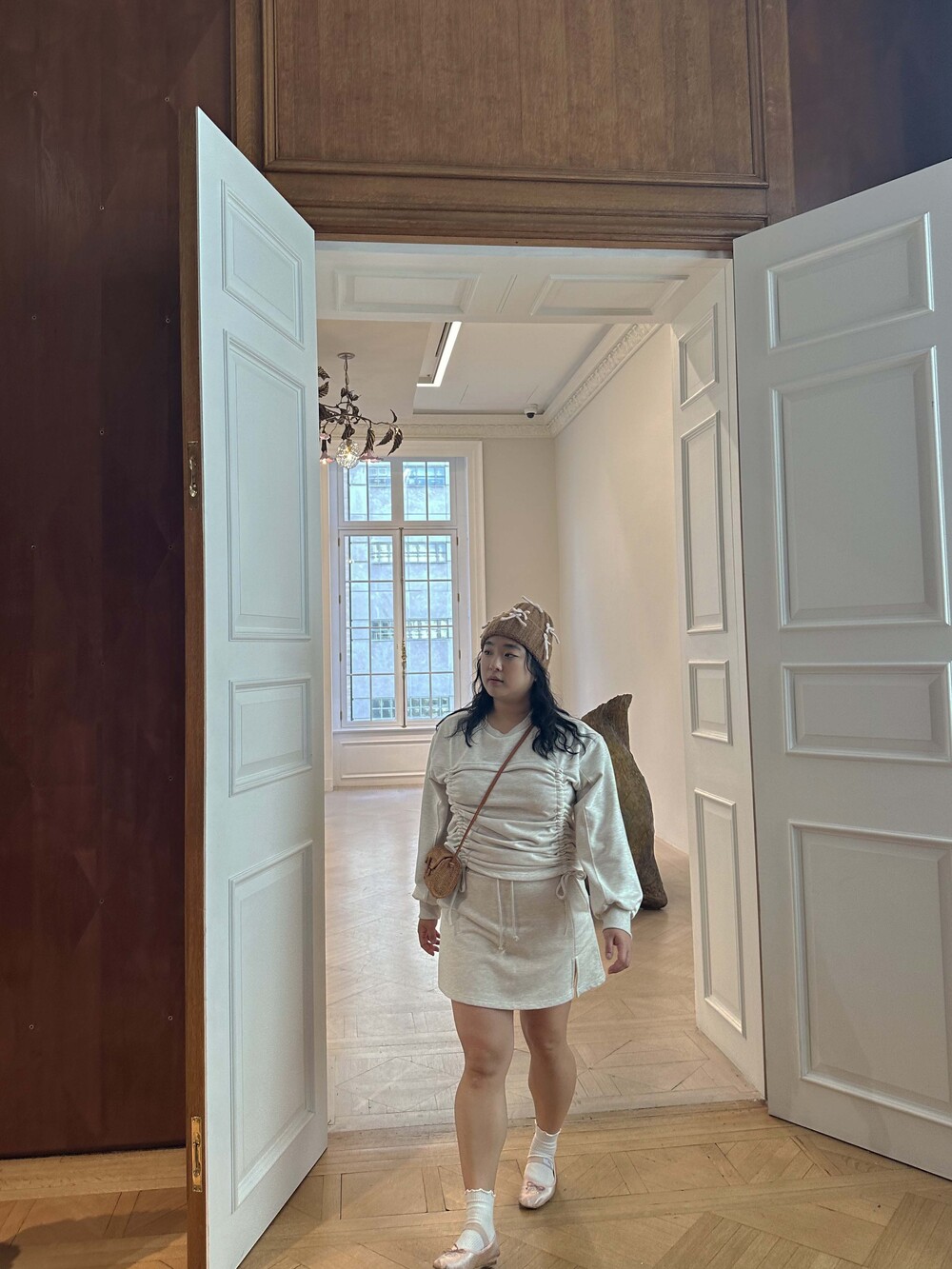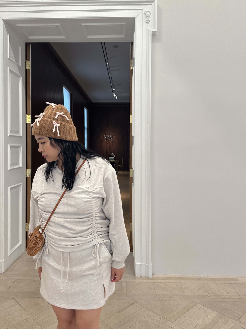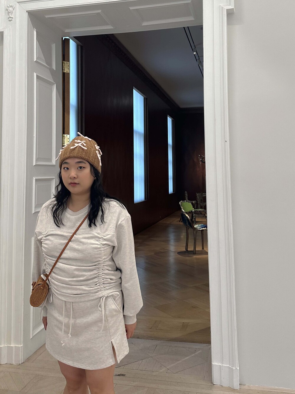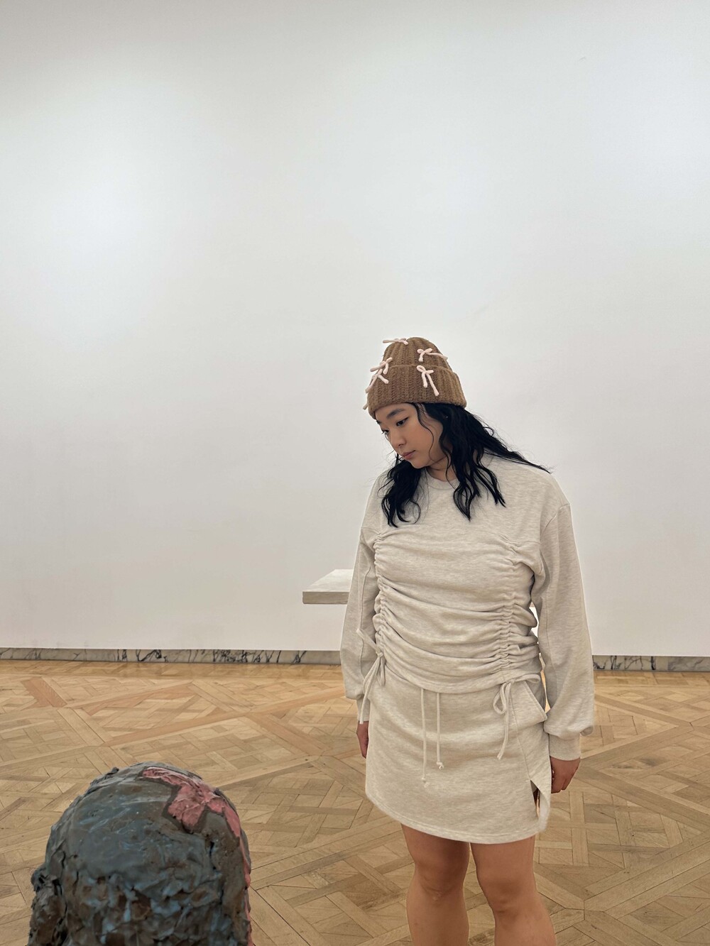 * Skirt slit detail at wearer's left