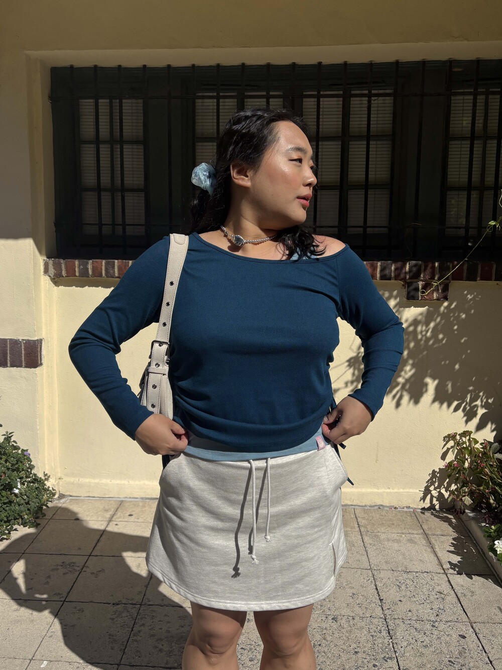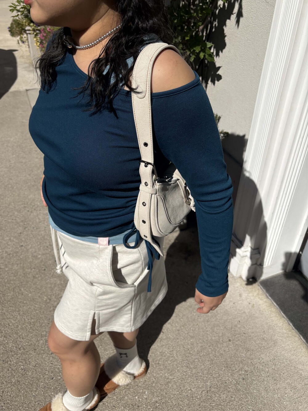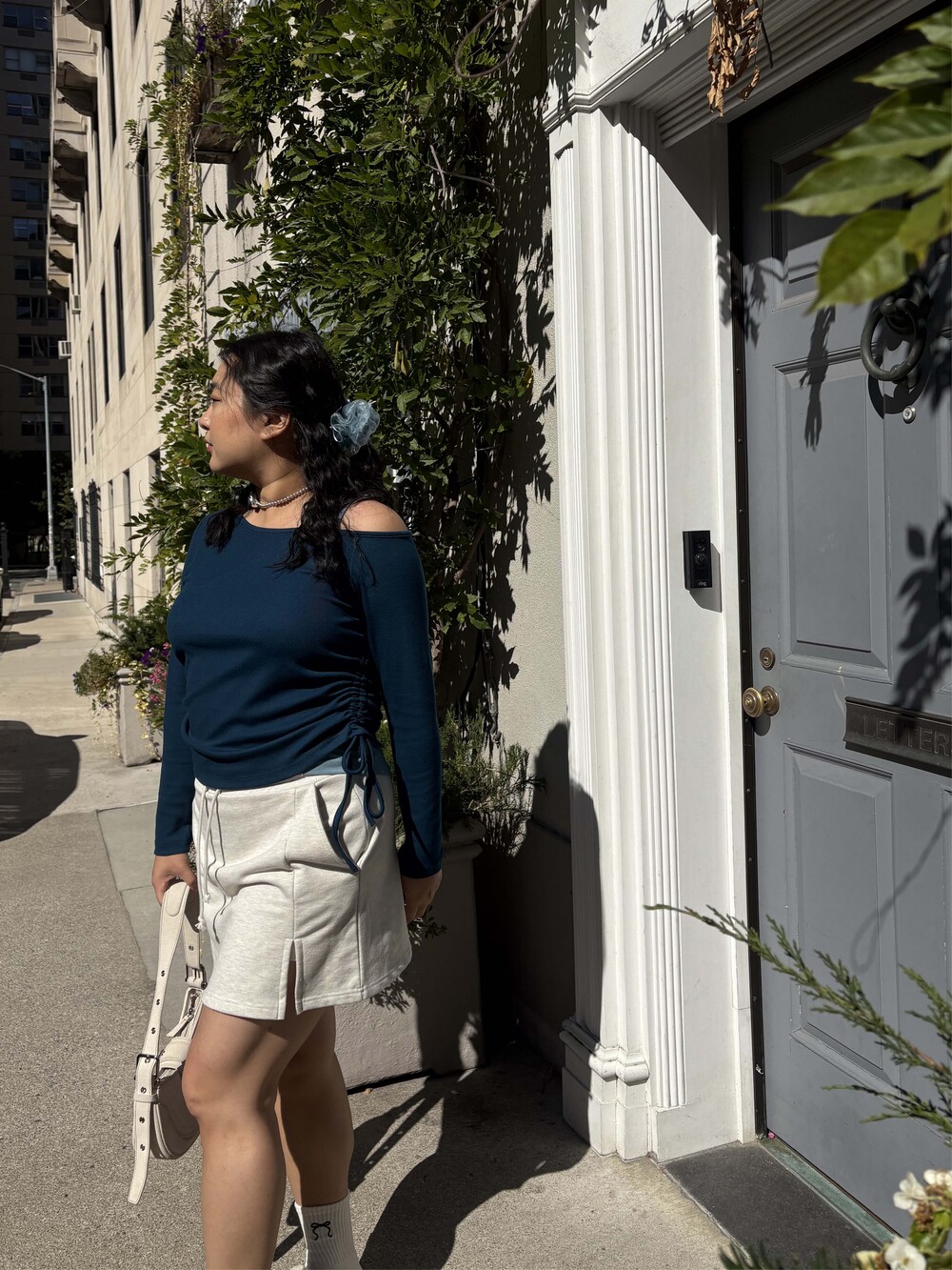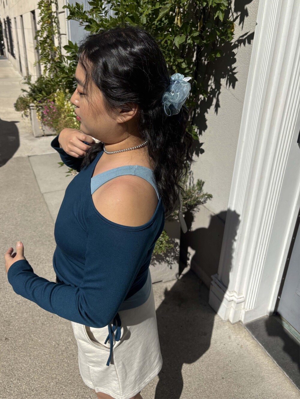 One Shoulder Shirring Set - Cobalt / Light Blue