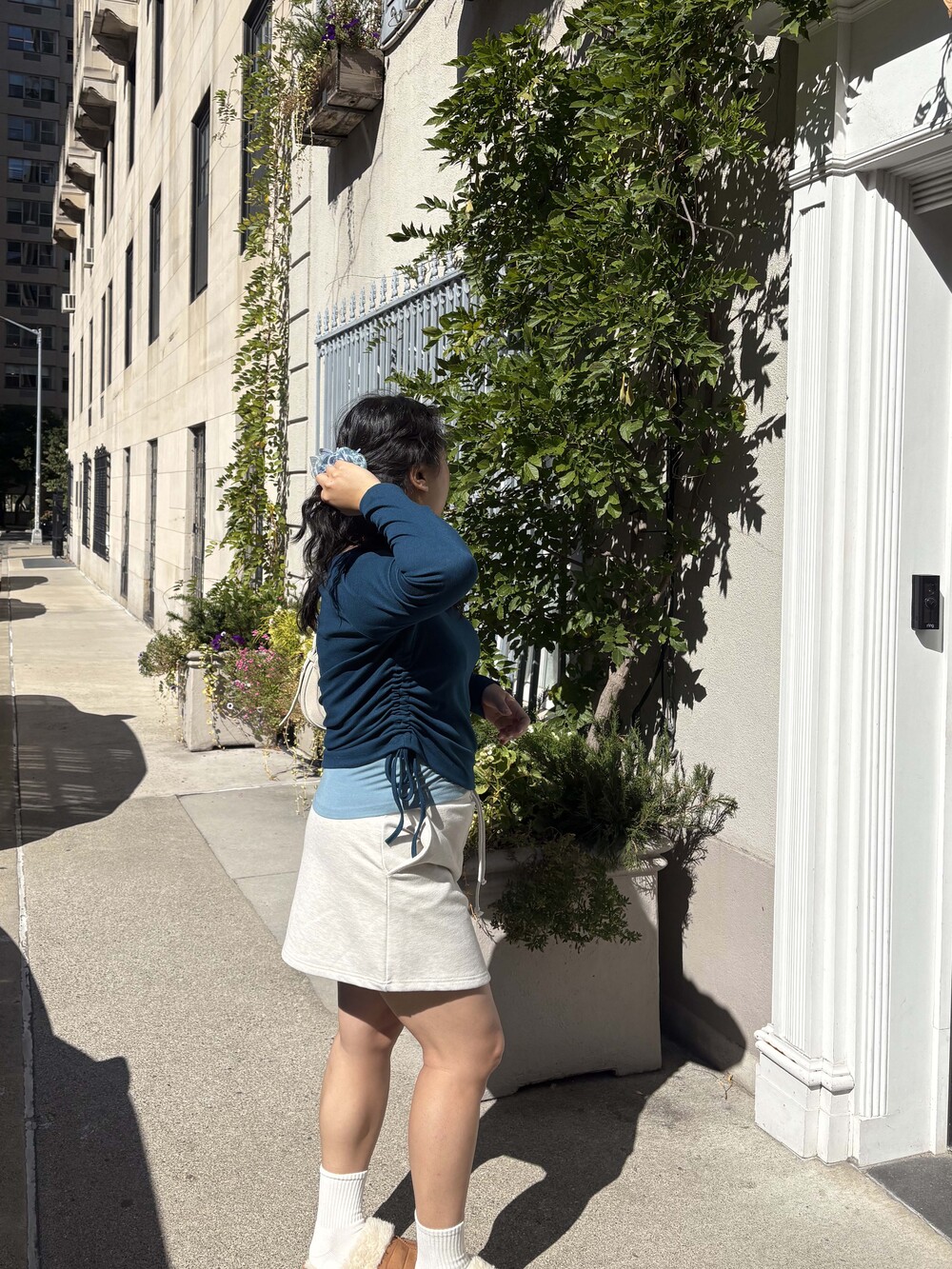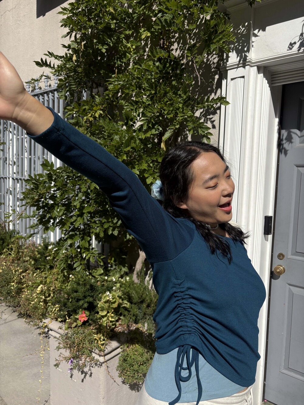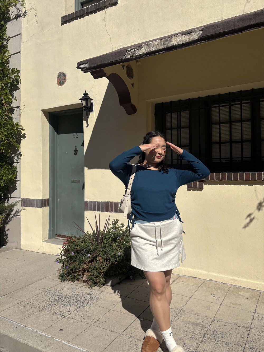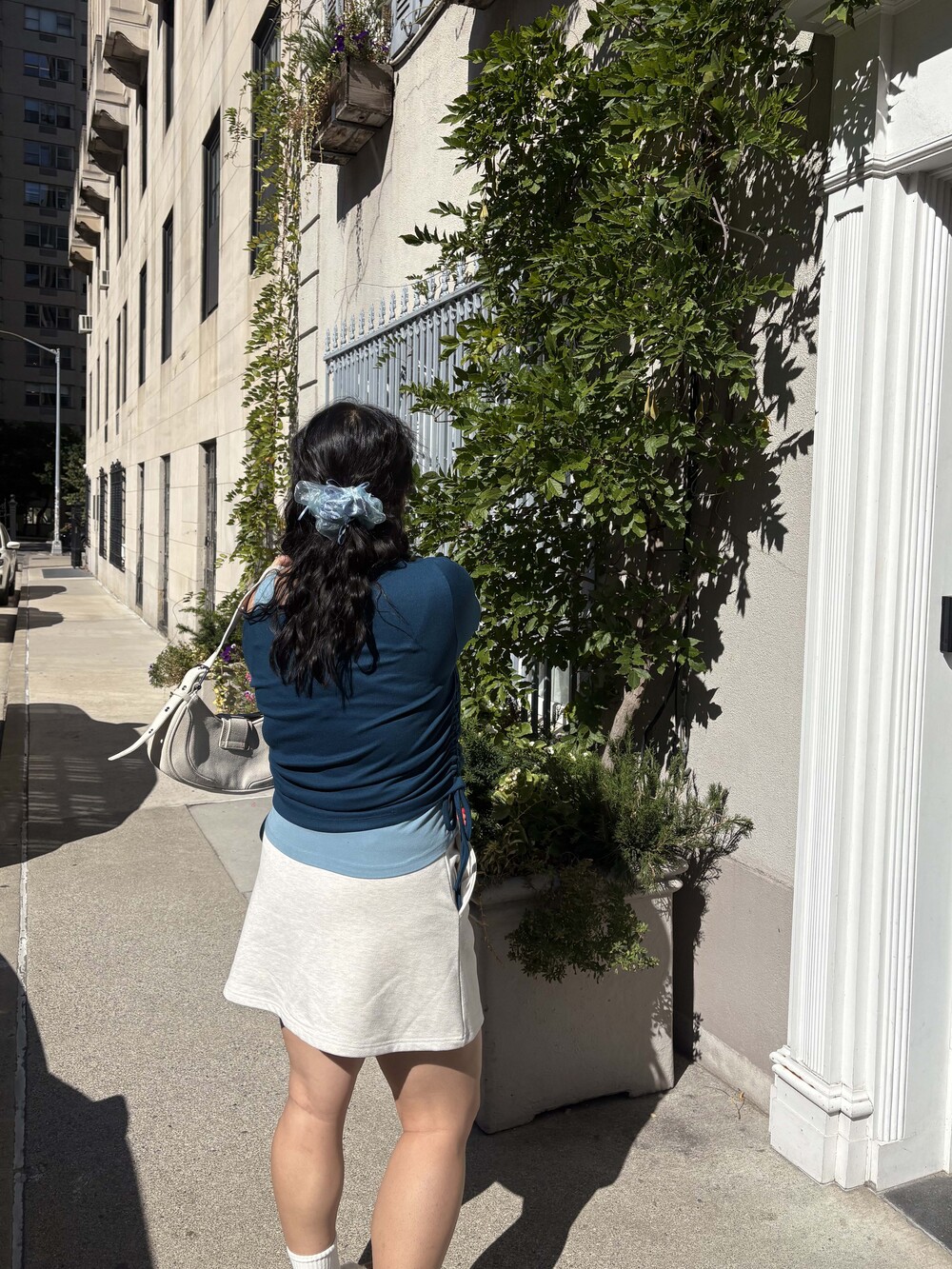 One Shoulder Shirring Set - Cobalt / Light Blue