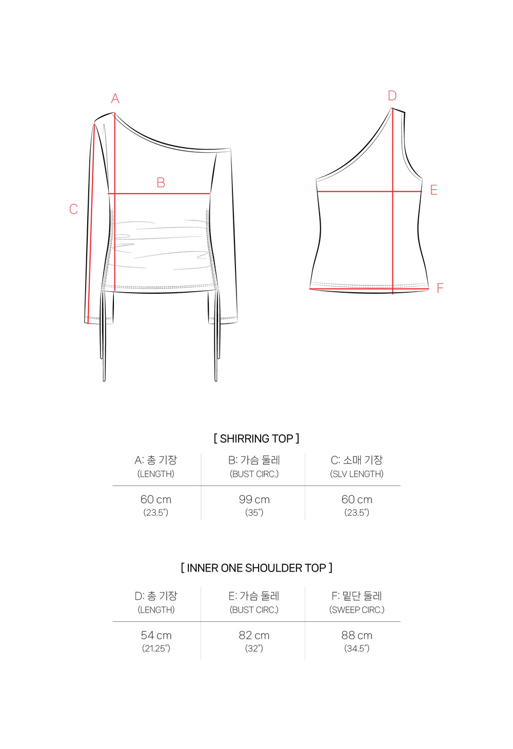 * Both one shoulder shirring top & inner tank top in comfortable & stretchy fabrics (One shoulder shirring top: 79% Poly, 17% Rayon, 4% Span / Inner tank top: 94% Rayon, 6% Span)