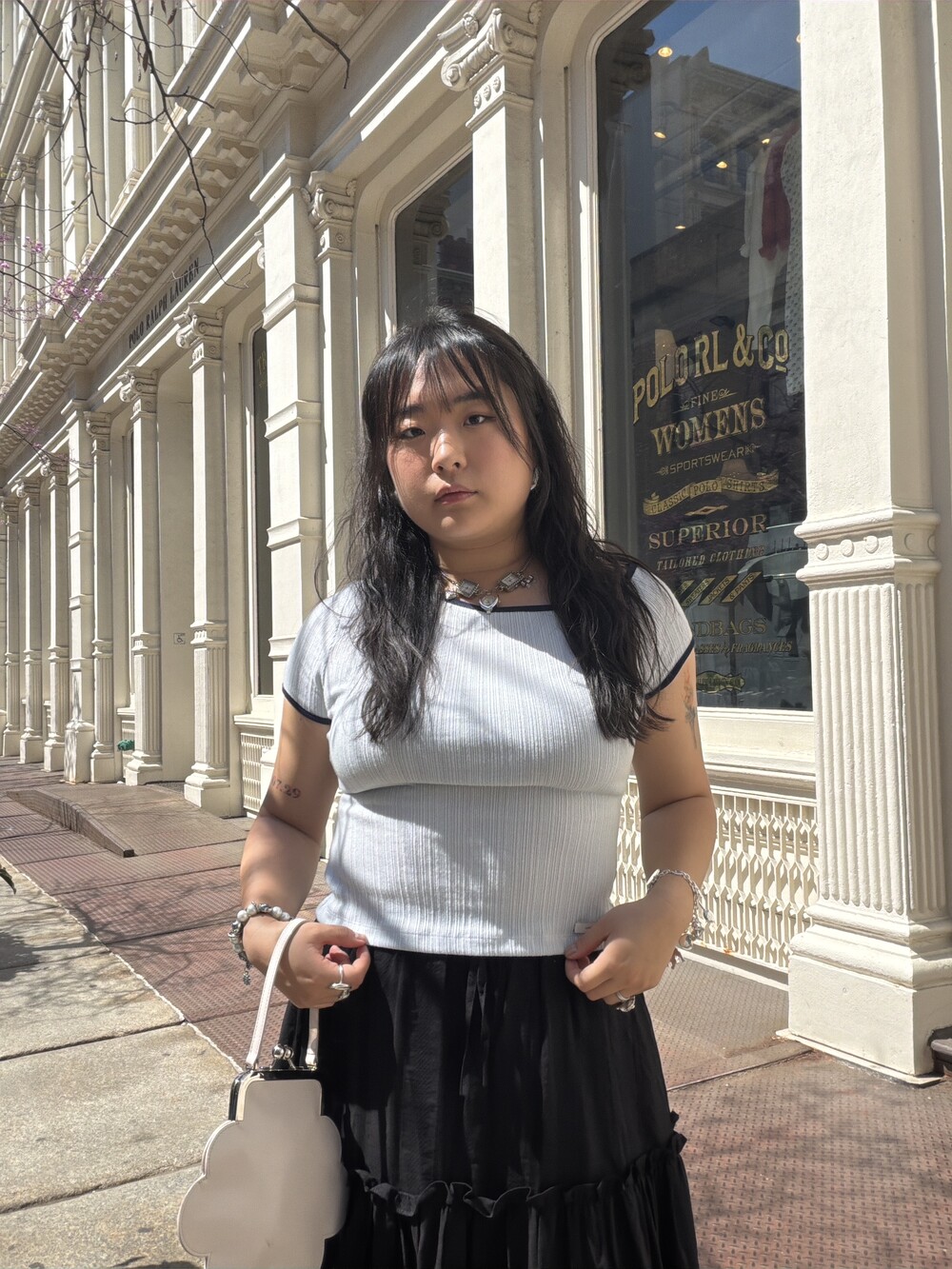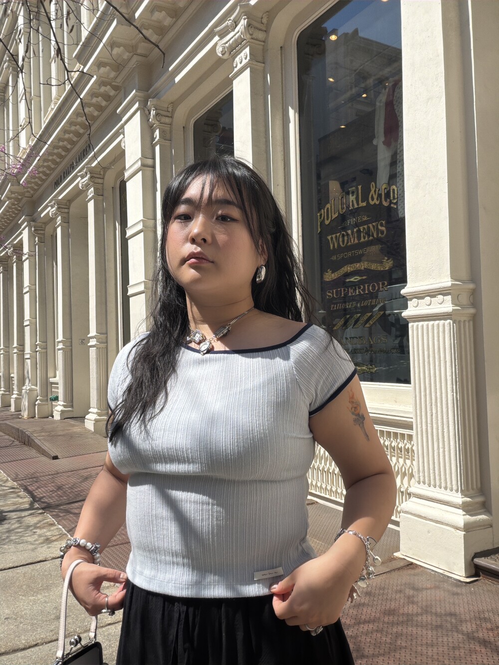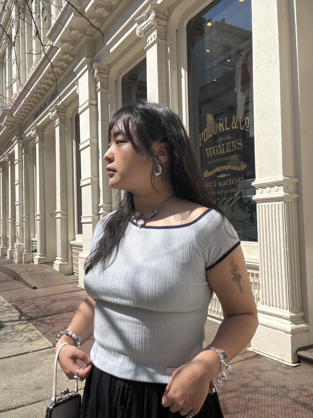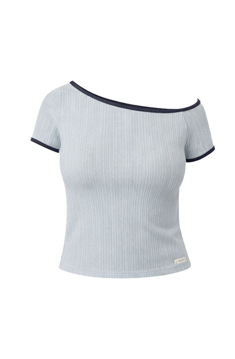 [PRE-ORDER] One Shoulder Short Sleeve Top - Light Blue/Navy