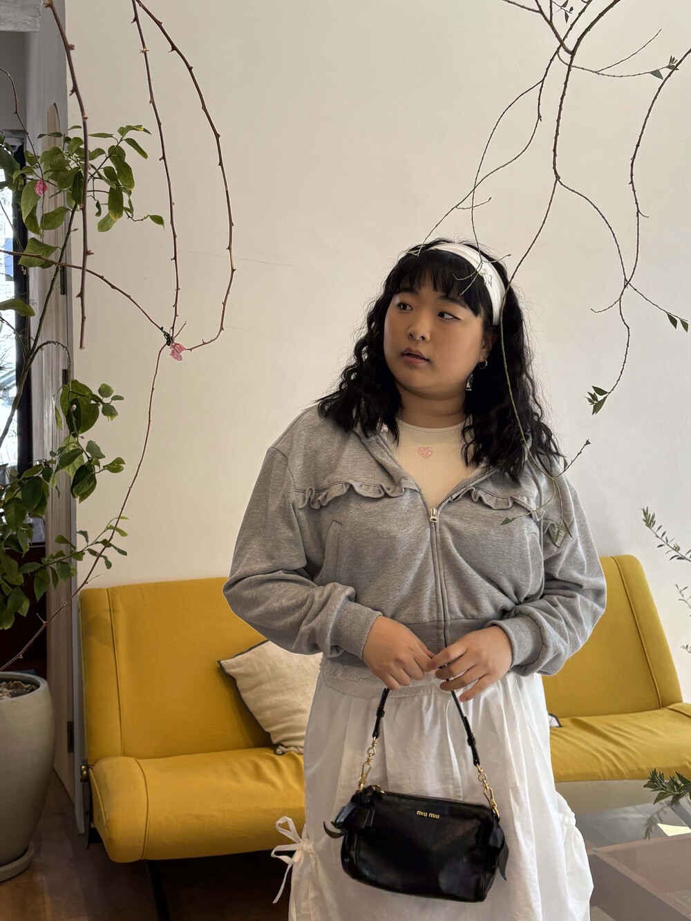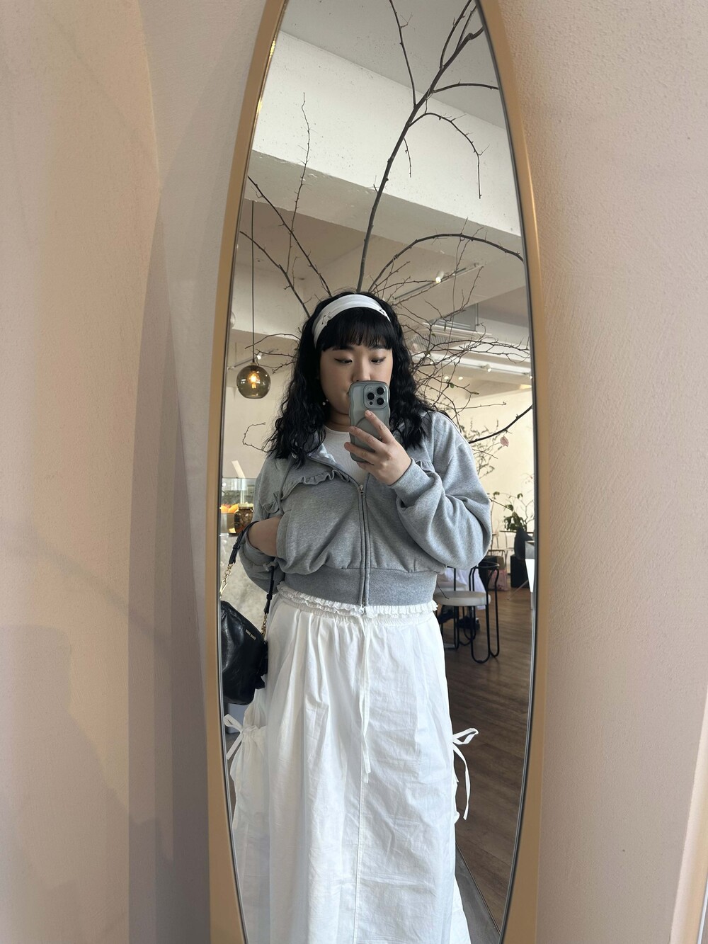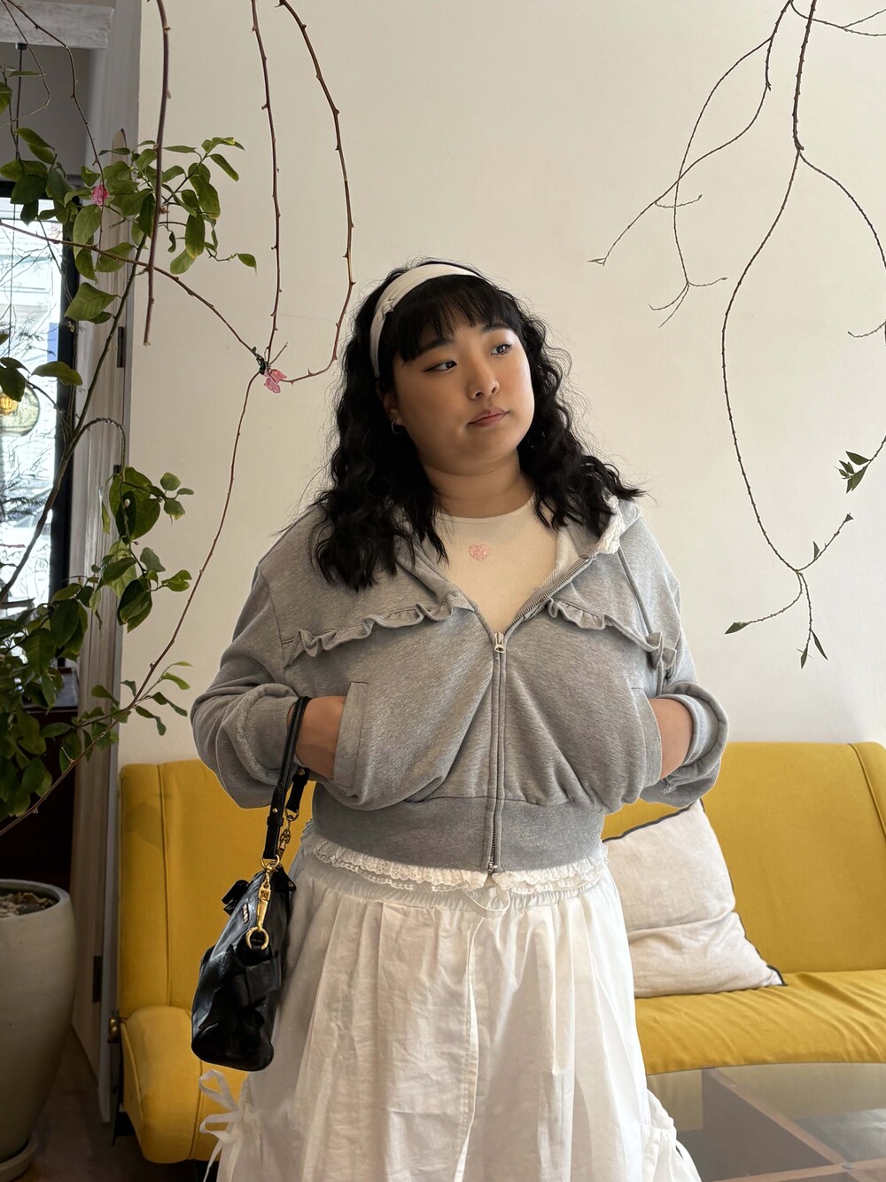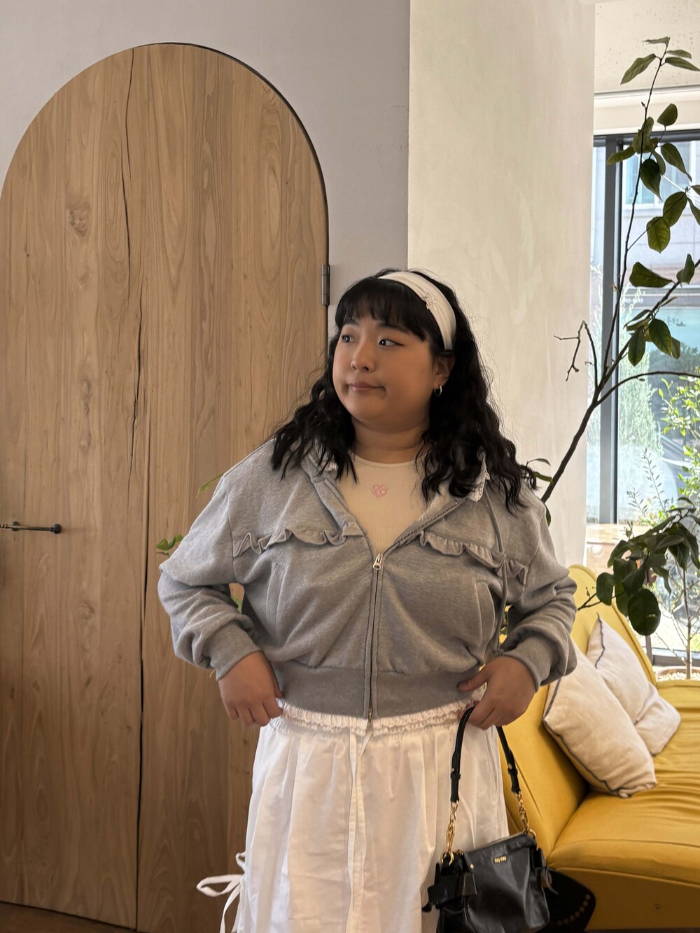 (Eve in A X Popsiz) Ruffle Zip-up Top - Gray