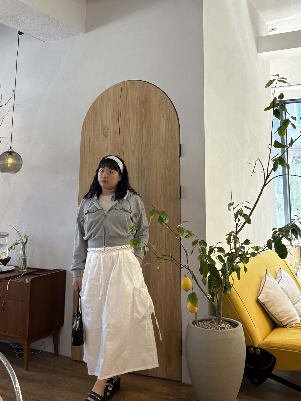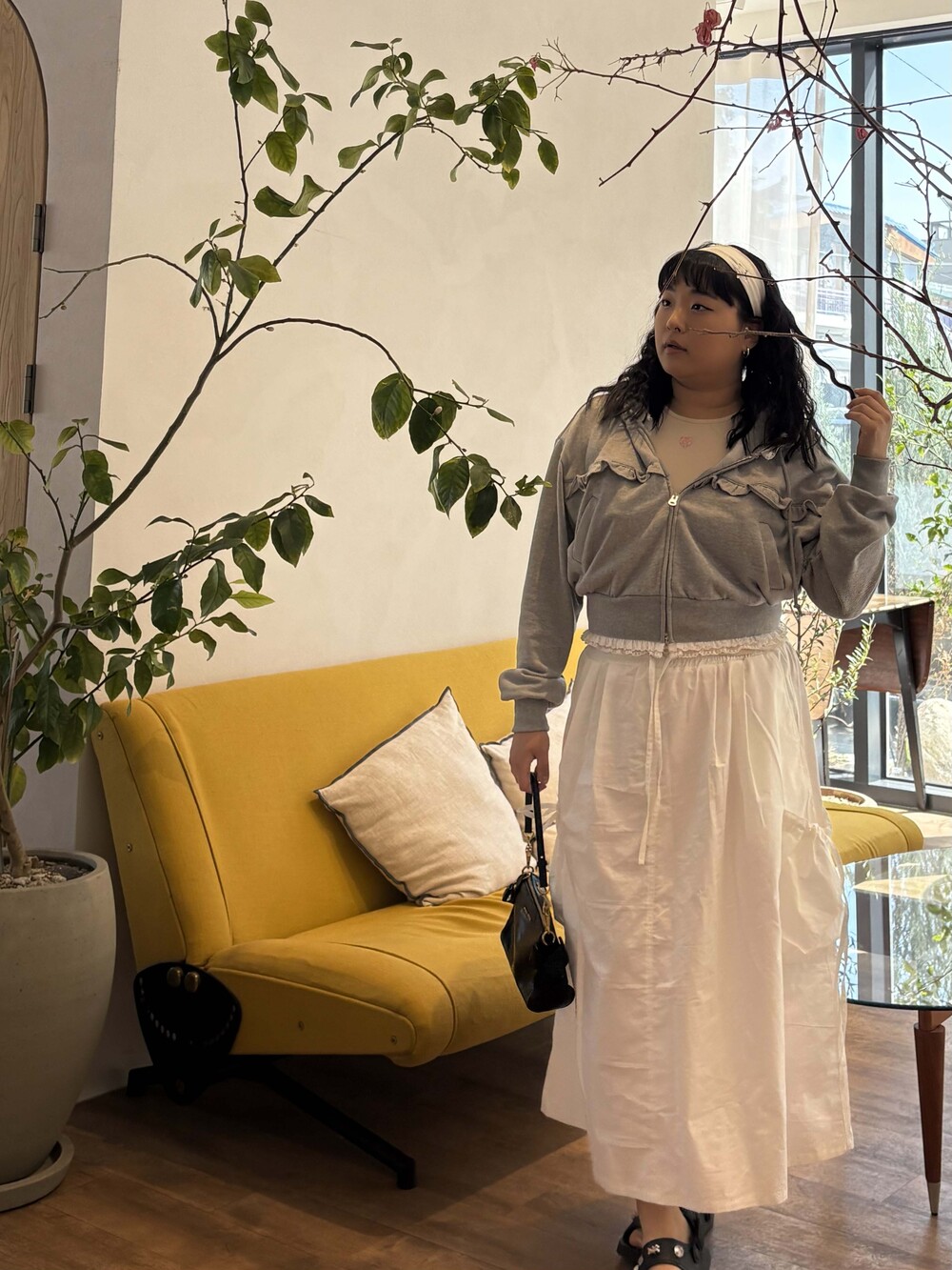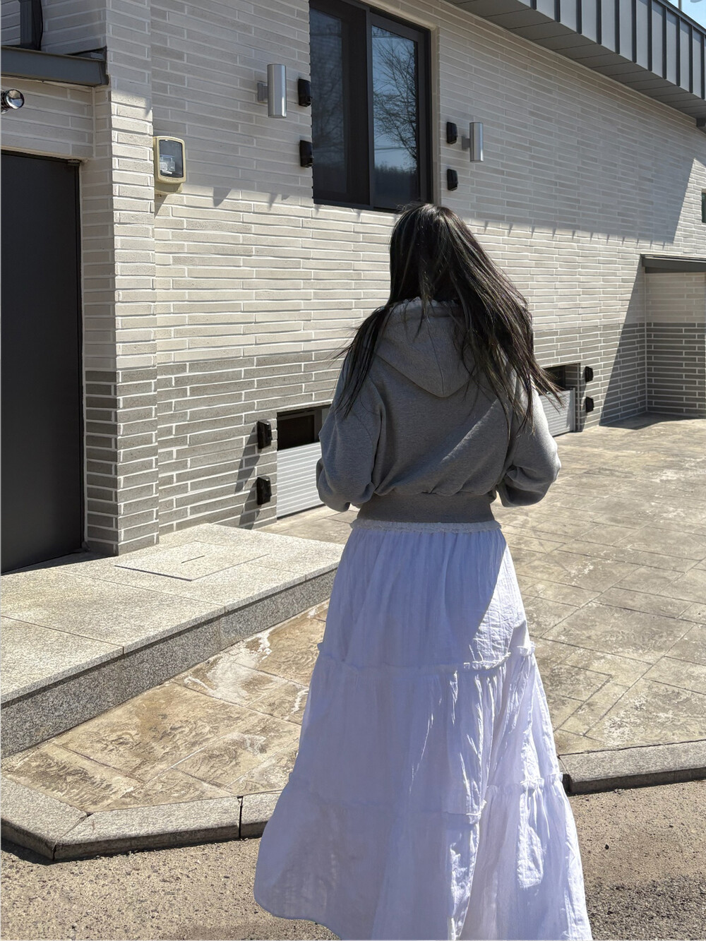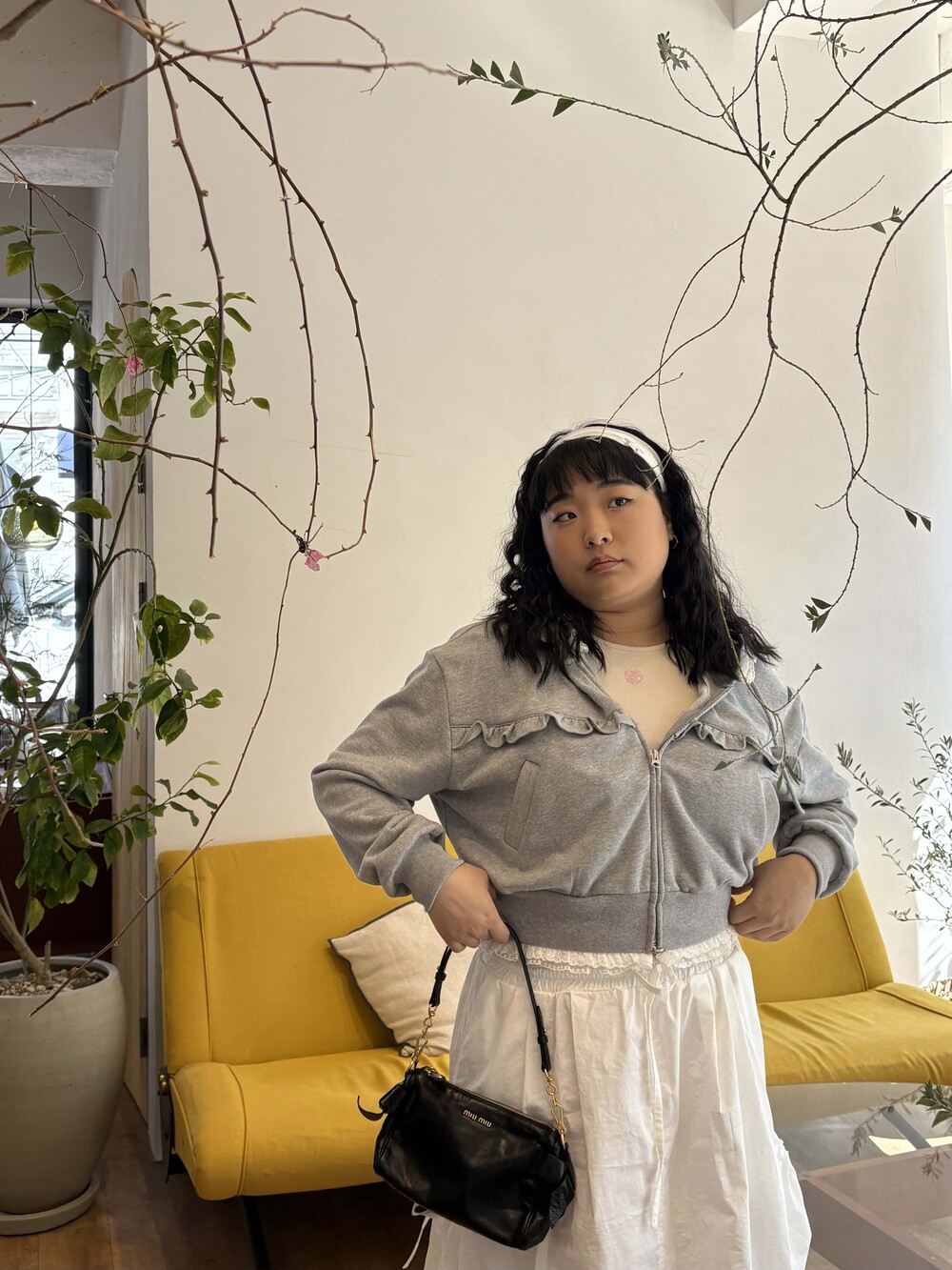 (Eve in A X Popsiz) Ruffle Zip-up Top - Gray