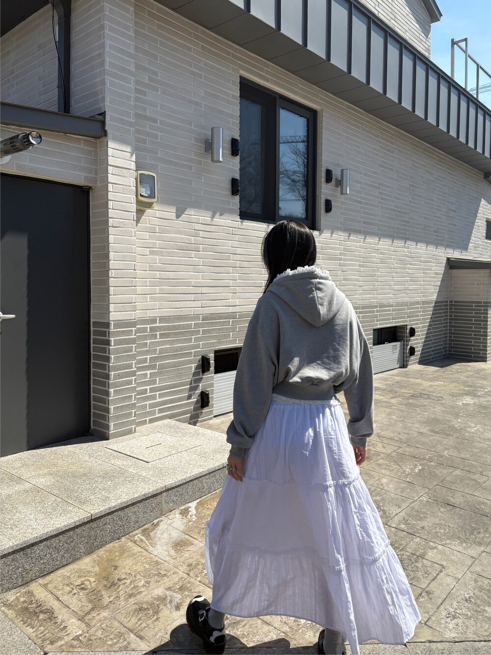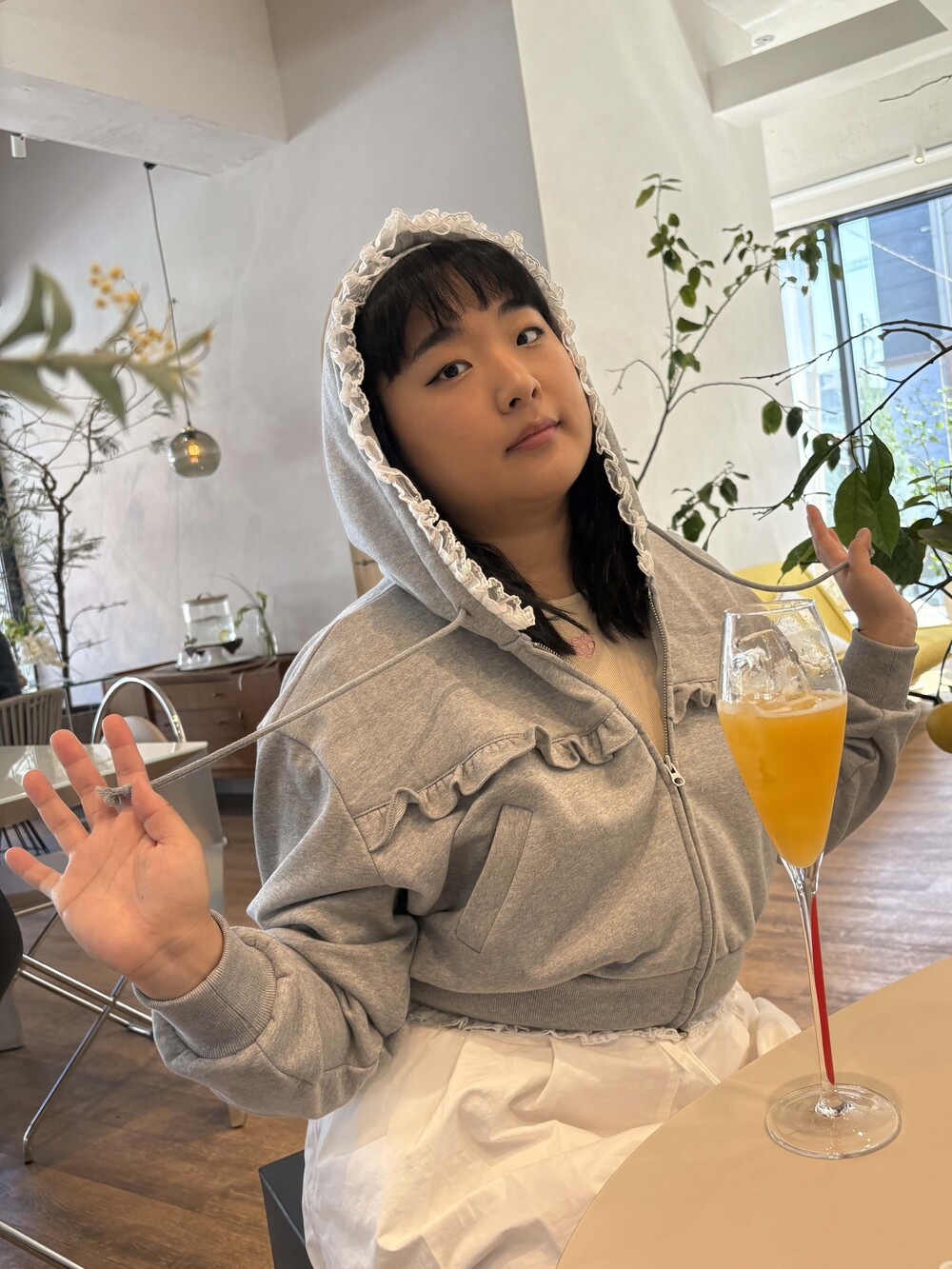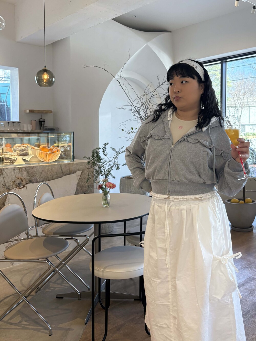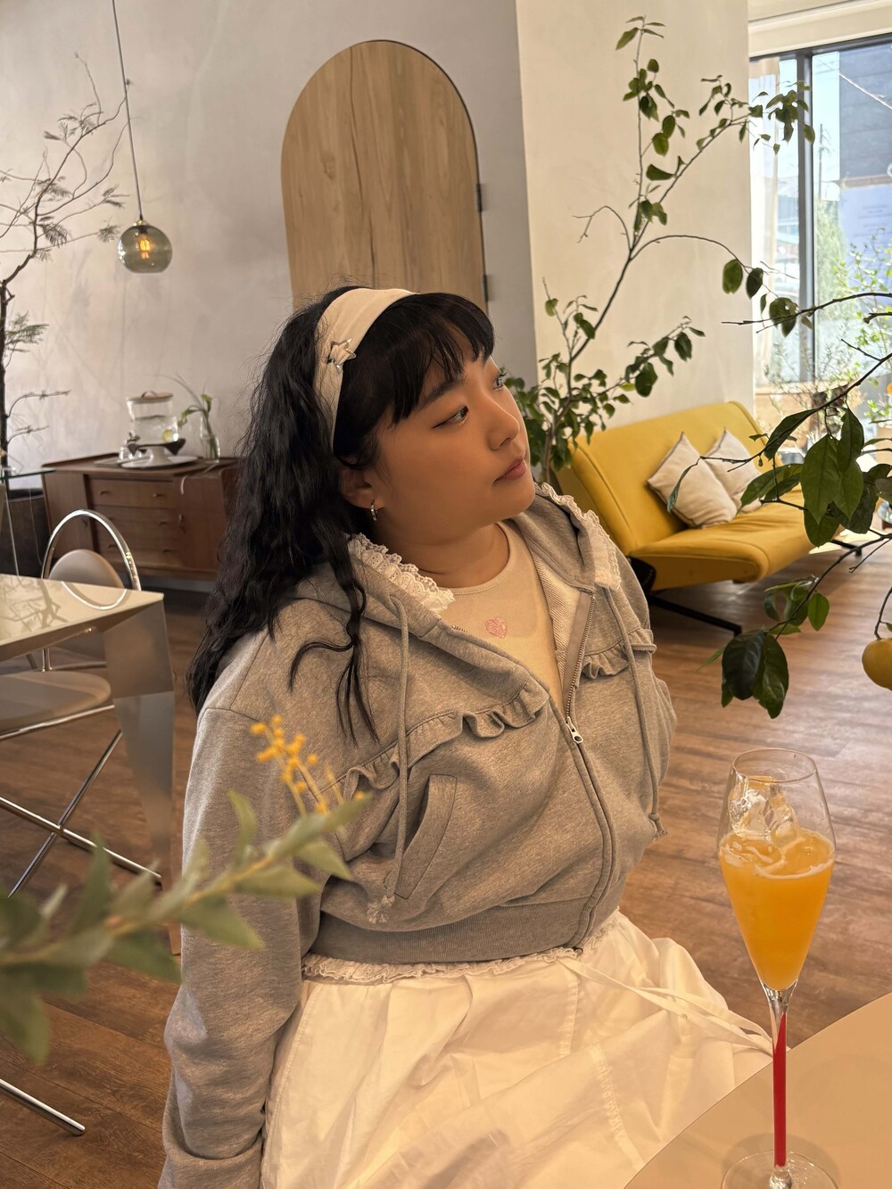 * Lace ruffle details on the hem and hoodie for a romantic touch