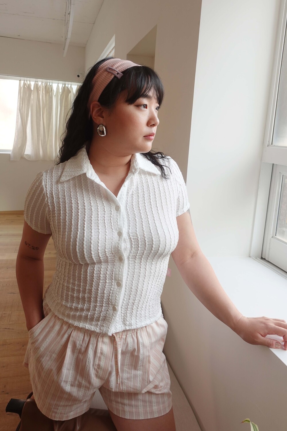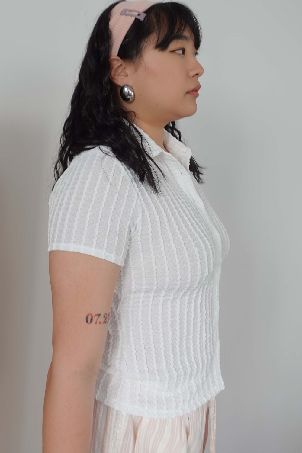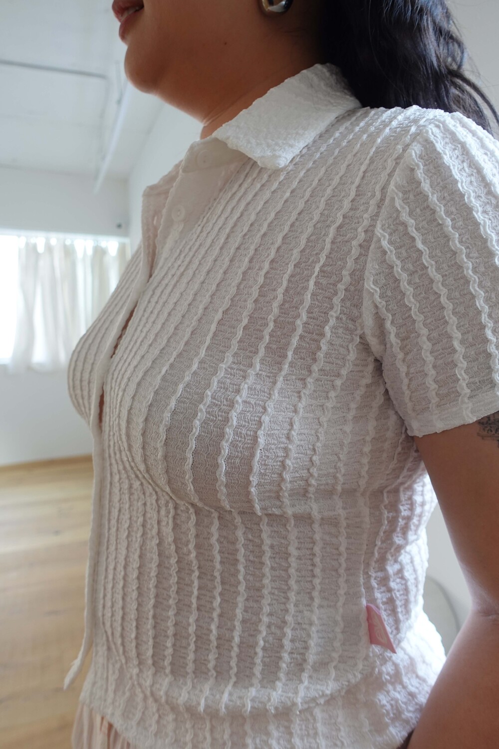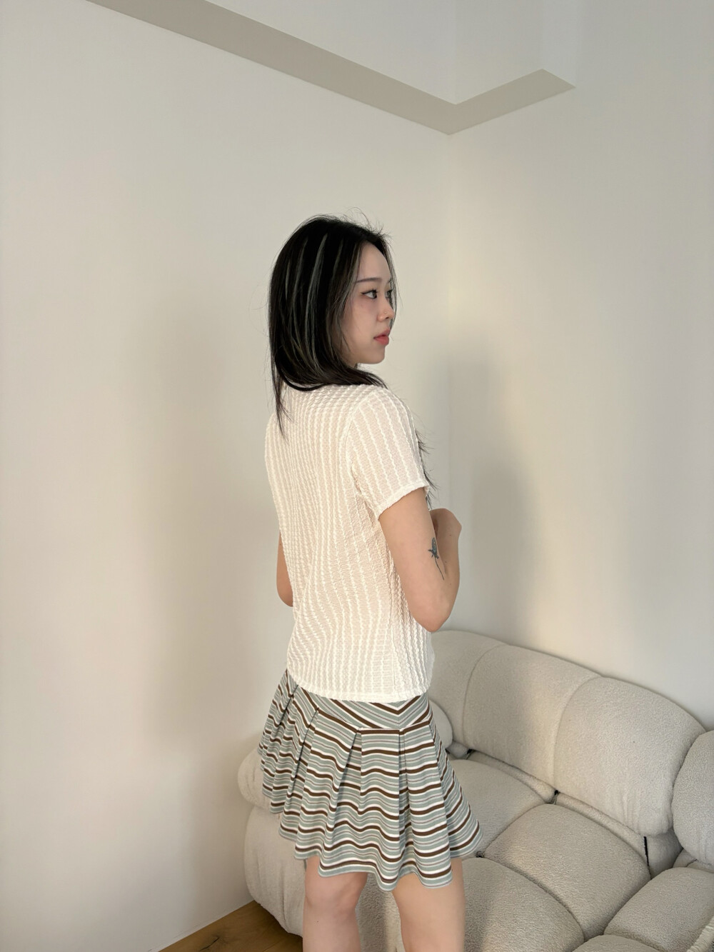 * Highly stretchable wavy-textured fabric (95% Polyester, 5% Polyurethane)