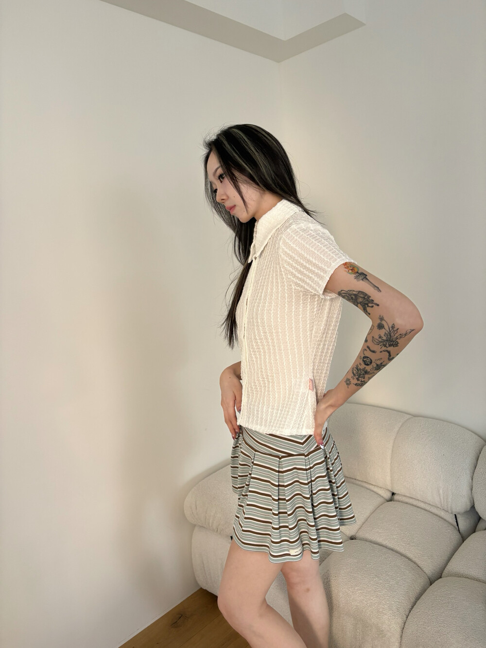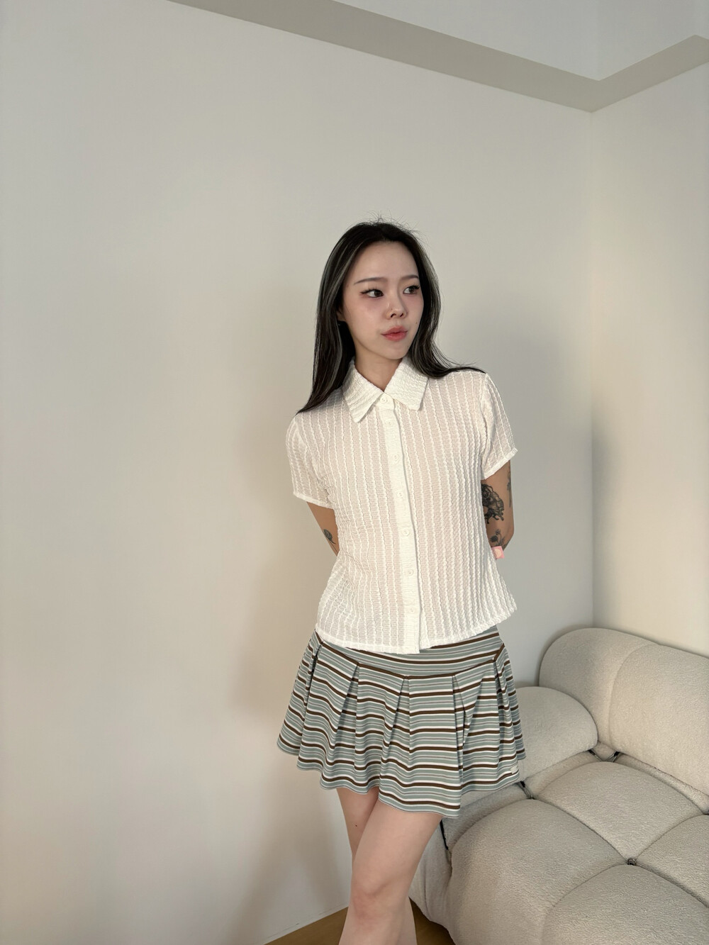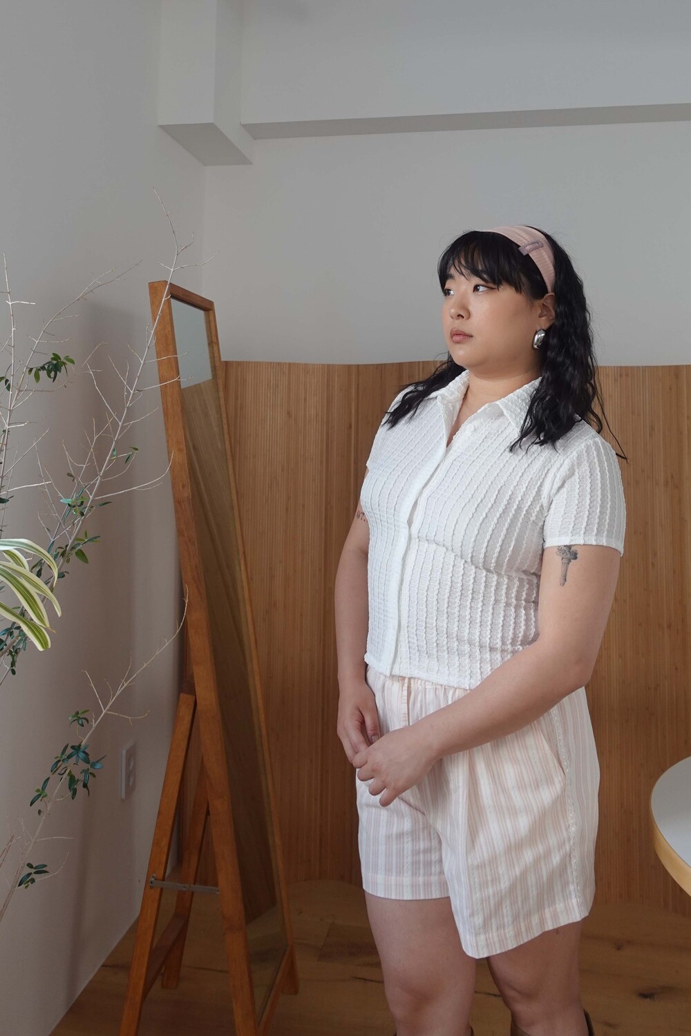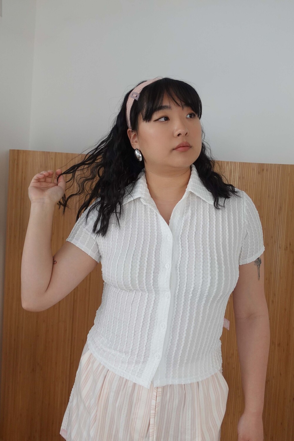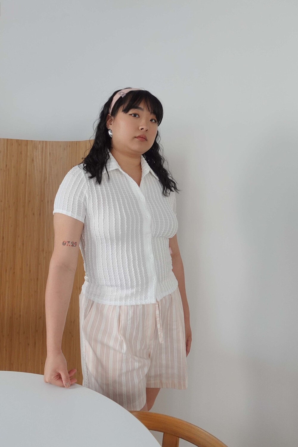 * Highly stretchable wavy-textured fabric (95% Polyester, 5% Polyurethane)