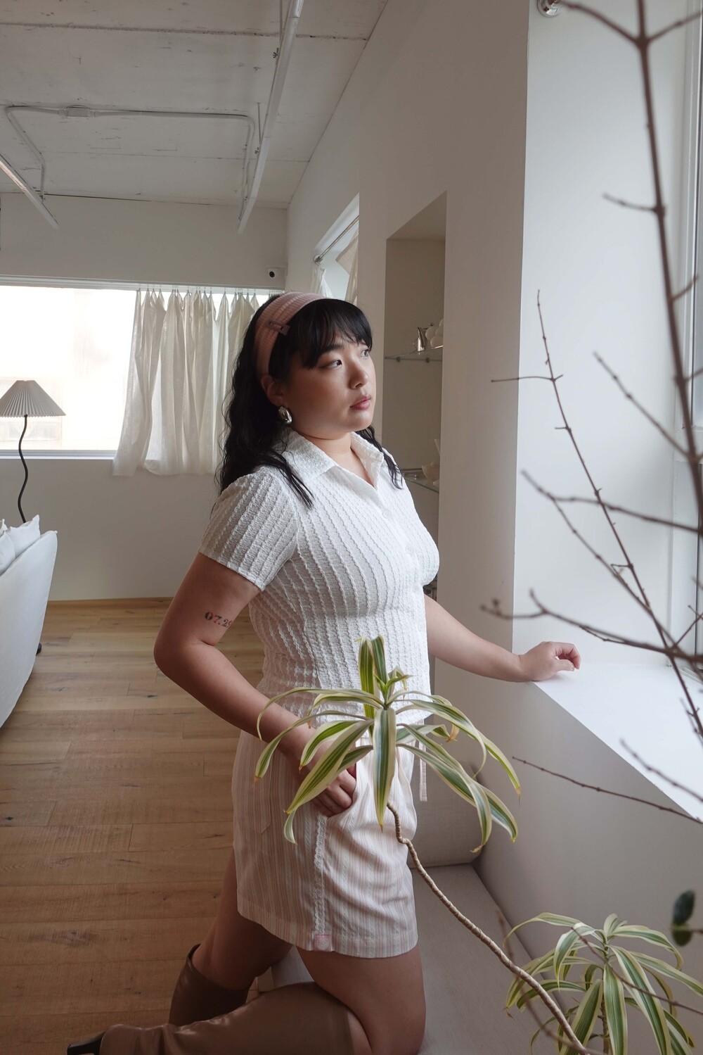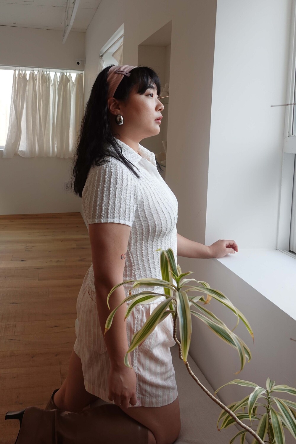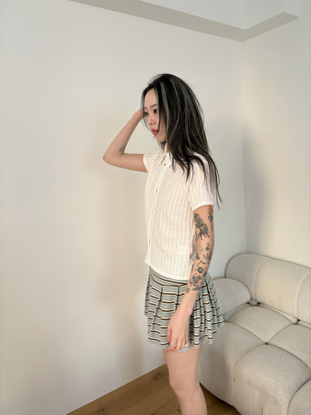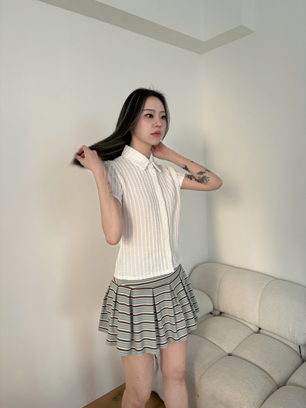 * Highly stretchable wavy-textured fabric (95% Polyester, 5% Polyurethane)