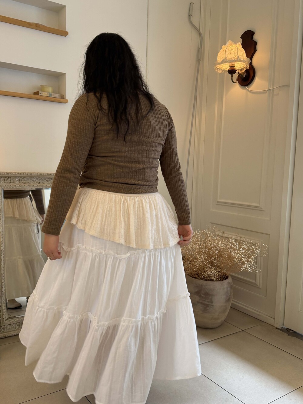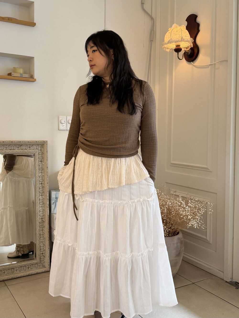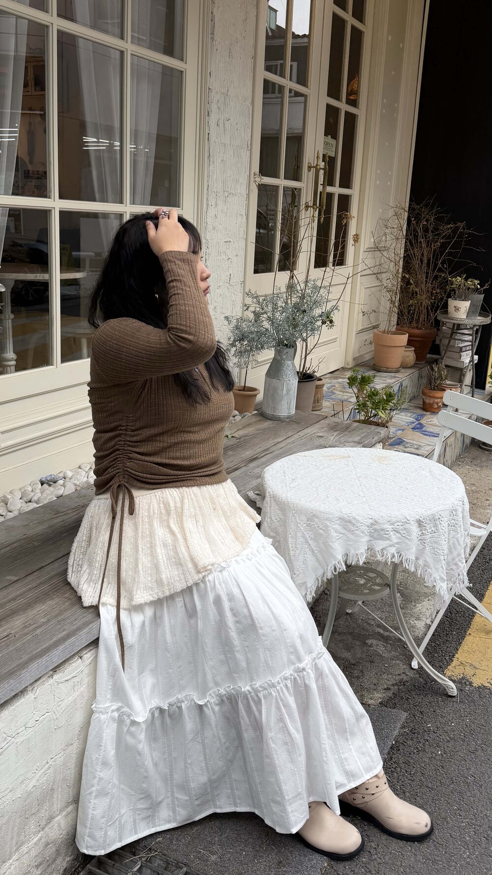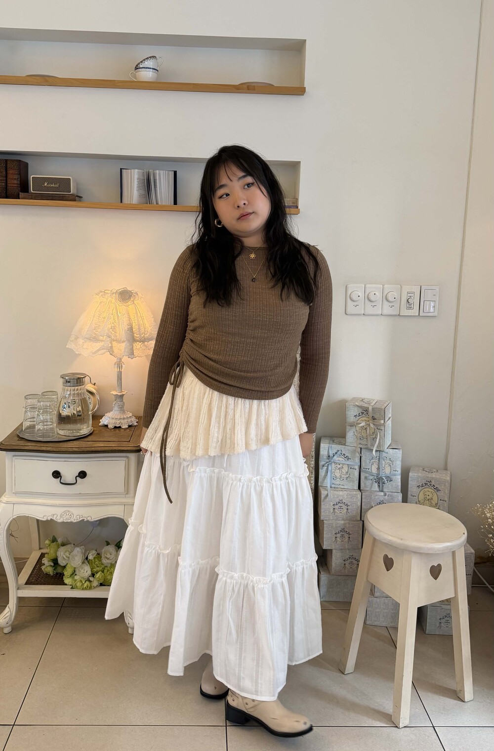 * Elastic waistband with an adjustable self-tie ribbon at the front