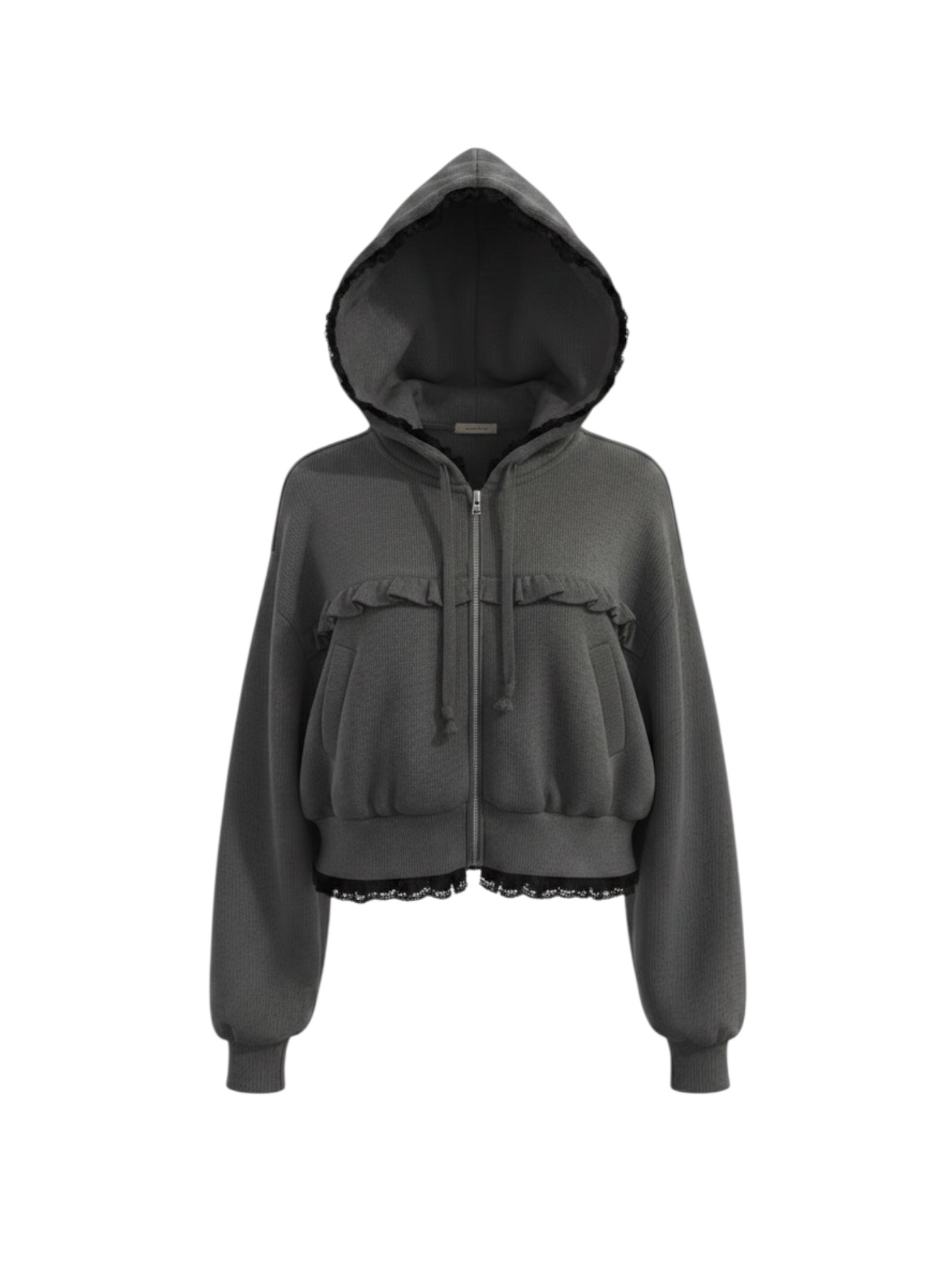 * Lace ruffle details on the hem and hoodie for a romantic touch